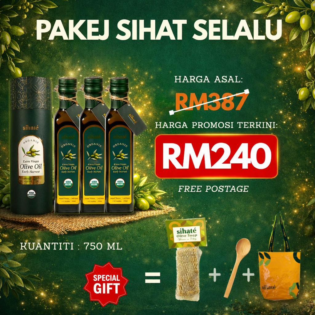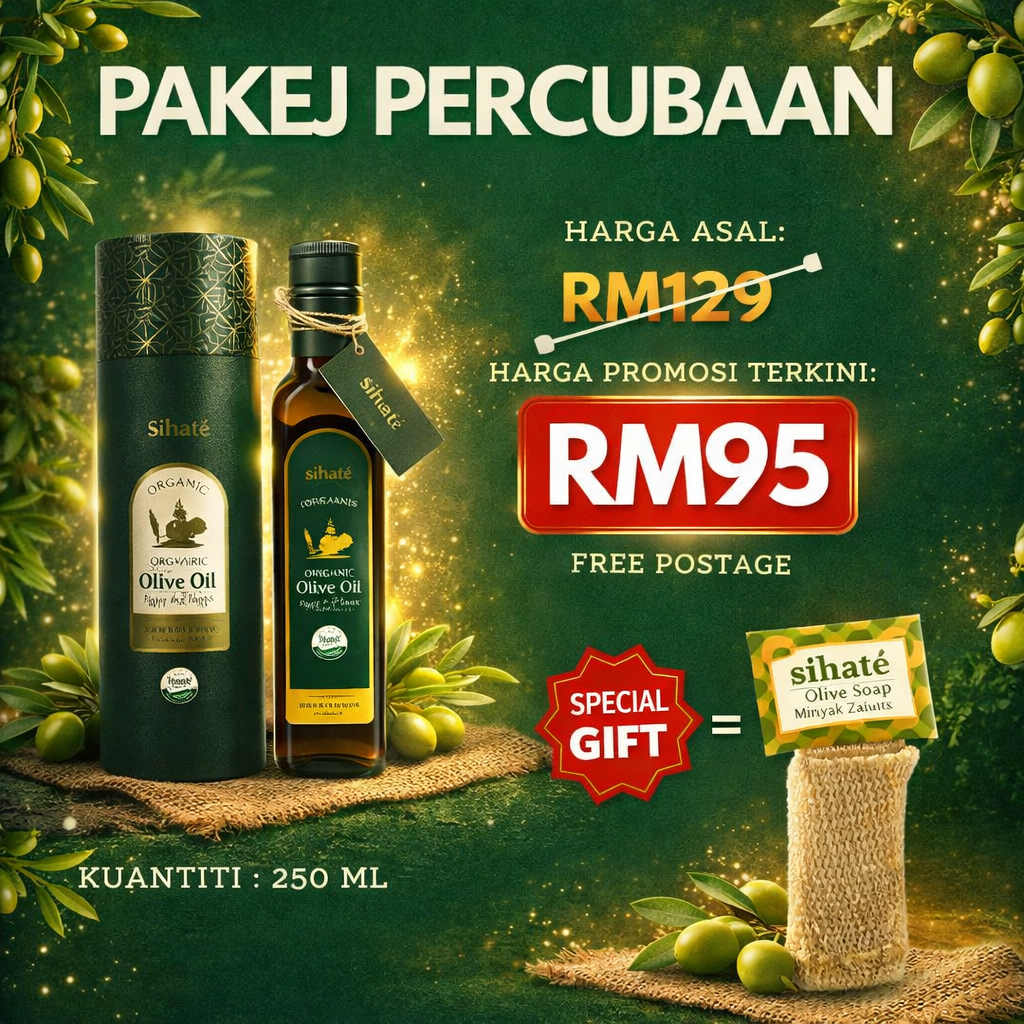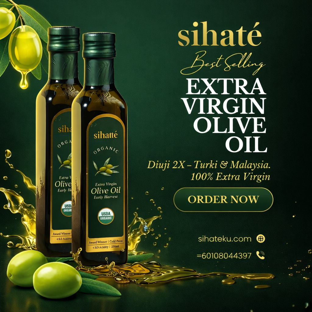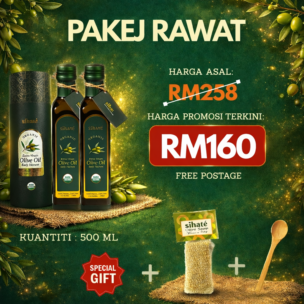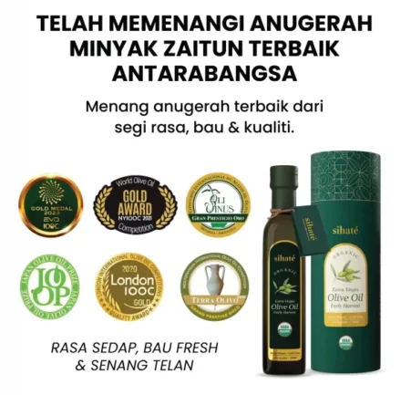 EVOO Sihaté adalah Extra Virgin Olive Oil berkualiti premium yang dihasilkan daripada buah zaitun yang dituai awal di Turki, di mana proses perahan sejuk digunakan untuk memastikan kualiti minyak terbaiik.