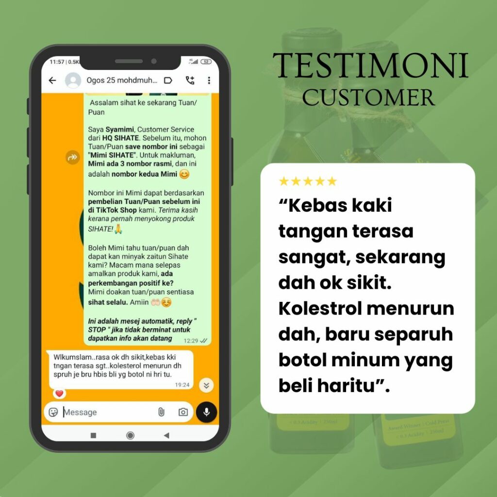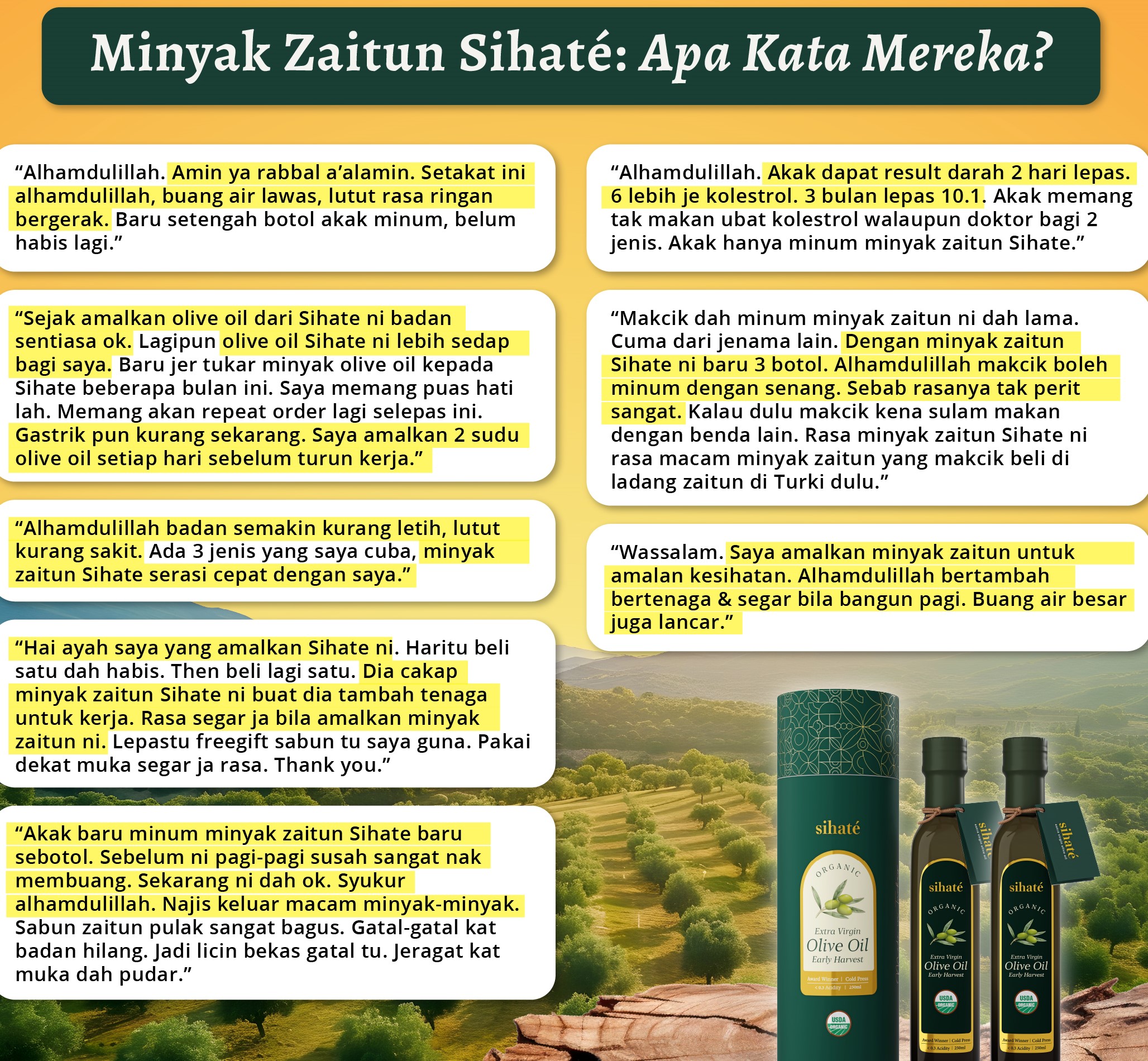 Anda dapat jaminan sekuat ini kerana Minyak Zaitun Sihate sudah berjaya membantu ramai orang yang mempunyai masalah SAMA SEPERTI ANDA dan ia terbukti berkesan.
